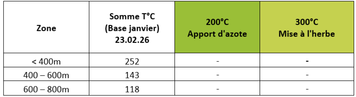 La somme de températures (quantité de chaleur cumulée) est utilisée pour donner des repères afin de dater les stades clefs de la pousse d’une prairie.